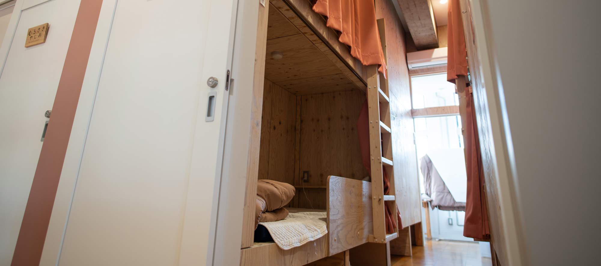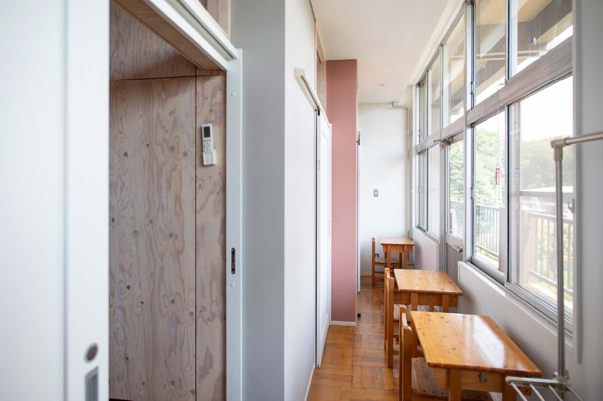 元教室を細かく仕切り2段ベッドを設置しました。